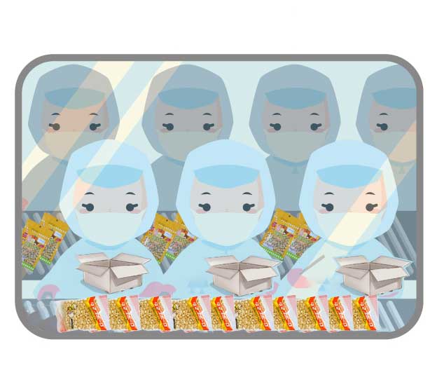 有機JAS認証も取得している工場を、タマゴボーロの製造から出荷までの各工程を説明します。
